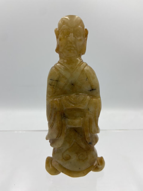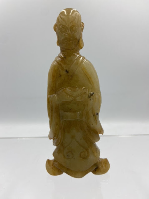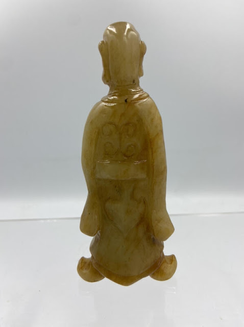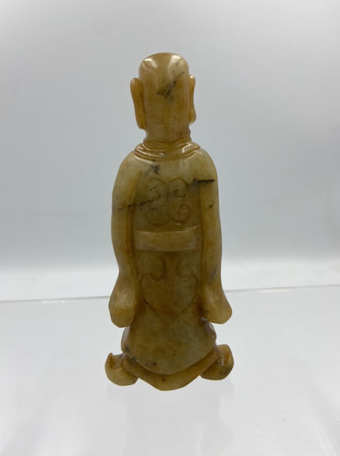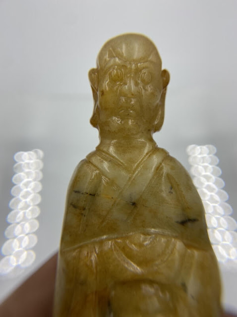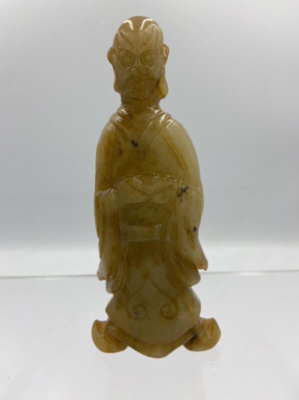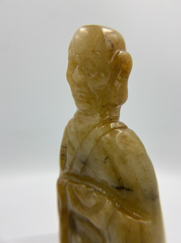 和闐玉雕佛陀的兩大弟子 智慧第一舍利弗 與 神通第一大目犍連 和田黃玉質地好雕工出神入化 兩件一組 百歲老人釋出其珍藏品